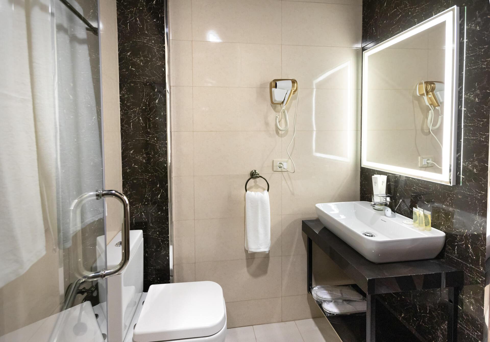 մասնավոր բաղնիք՝ վարսահարդարիչով, հայելիով, ինչպես նաև այն բոլոր հարմարություններով, որոնք ձեզ կարող են անհրաժեշտ լինել ձեր գտնվելու ընթացքում,